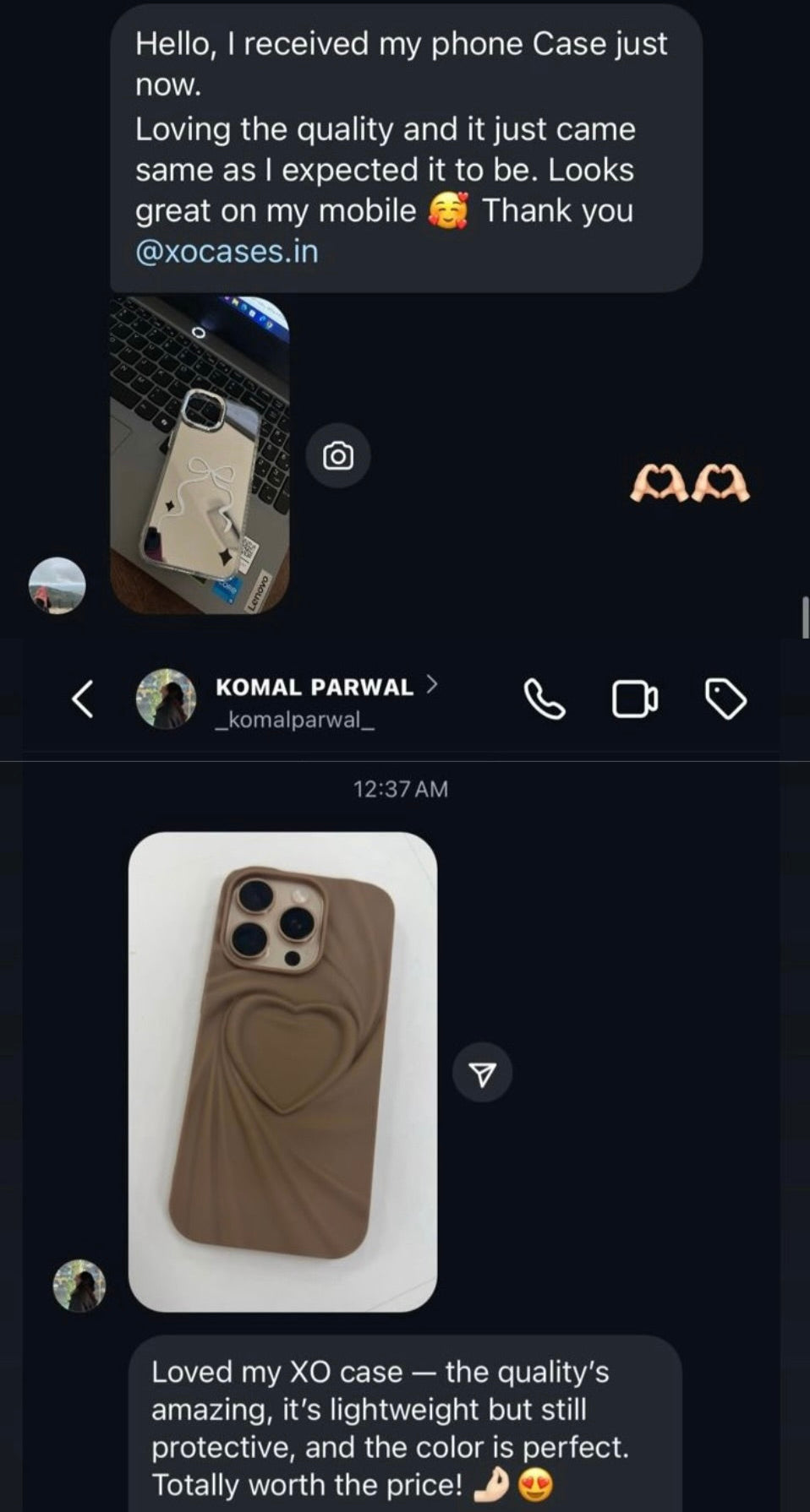 Reach out to us on Instagram, Whatsapp or xocases.in@gmail.com